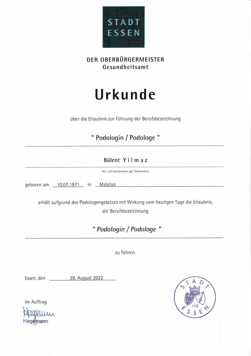 Unsere Praxis verfügt über eine Kassenzulassung der gesetzlichen Krankenversicherungen. Patienten mit einer Indikation für eine podologische Komplexbehandlung (hierzu zählen beispielsweise ein diabetischer Fuß, Neuropathien, Querschnittssyndrom, o.a.) haben die Möglichkeit, eine Kostenerstattung durch Ihre Krankenkasse zu erhalten. Voraussetzung ist eine Heilmittelverodnung des Haus- oder Facharztes.